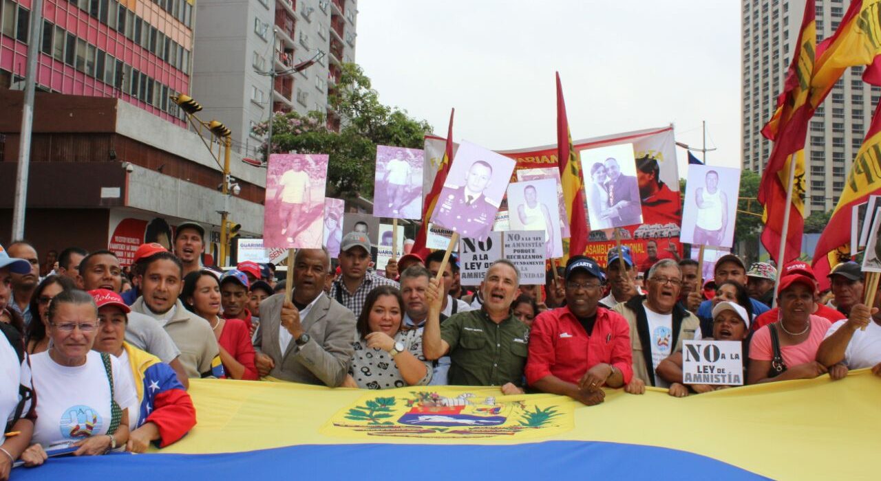 Este jueves el pueblo venezolano se movilizó desde la plaza Morelos hasta el Palacio de Miraflores, en Caracas, para manifestar el rechazo de la Ley de Amnistía promovida por la derecha de la Asamblea Nacional (AN) y pedir el no refrendo de esta norma al Presidente Nicolás Maduro Moros.En medio de la marea roja, se le consultó al líder revolucionario, Freddy Bernal, sobre este escrito el cual lo calificó como «criminal», debido que «vulnera el sentido de la justicia venezolana, viola los Derechos Humanos, propicia el caos y un Estado fallido».