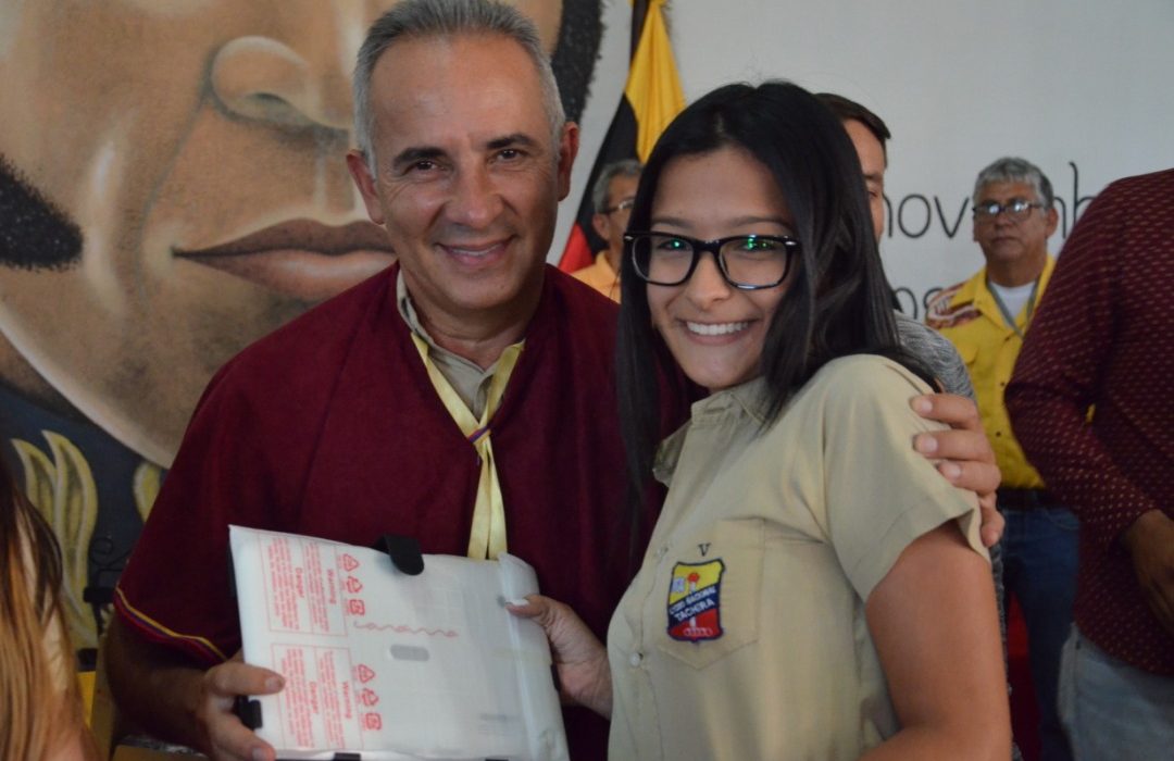 77 jóvenes de educación media del estado Táchira recibieron tablet modelo Canaima, en reconocimiento a la excelencia educativa, así lo explicó Freddy Bernal, protector de la entidad andina, quien destacó como “la Revolución Bolivariana premia el esfuerzo, el sacrificio, este es un premio por ser los mejores”.