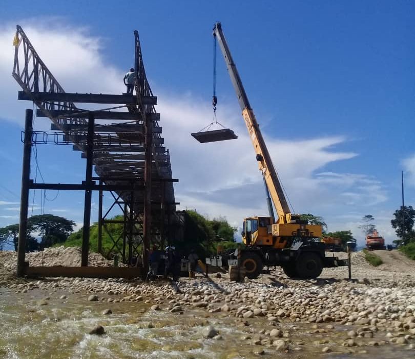 «La construcción del Puente sobre el río Burgüa, se viene ejecutando desde el mes de marzo. Se había colocado un puente artesanal para el paso de materiales, el cual es usado también por la población”, indicó.