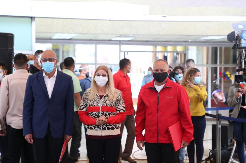 El primer vicepresidente del Partido Socialista Unido de Venezuela Diosdado Cabello, acompañado por la Primera Combatiente Cilia Flores, el candidato y dirigente del PSUV Jorge Rodríguez, así como de dirigentes de las nueve organizaciones con fines políticos que van en alianza perfecta a la contienda electoral; consignaron el listado en la sede principal de Consejo Nacional Electoral (CNE), ubicada en Plaza Caracas, dentro del lapso extendido de postulaciones que culmina este viernes.