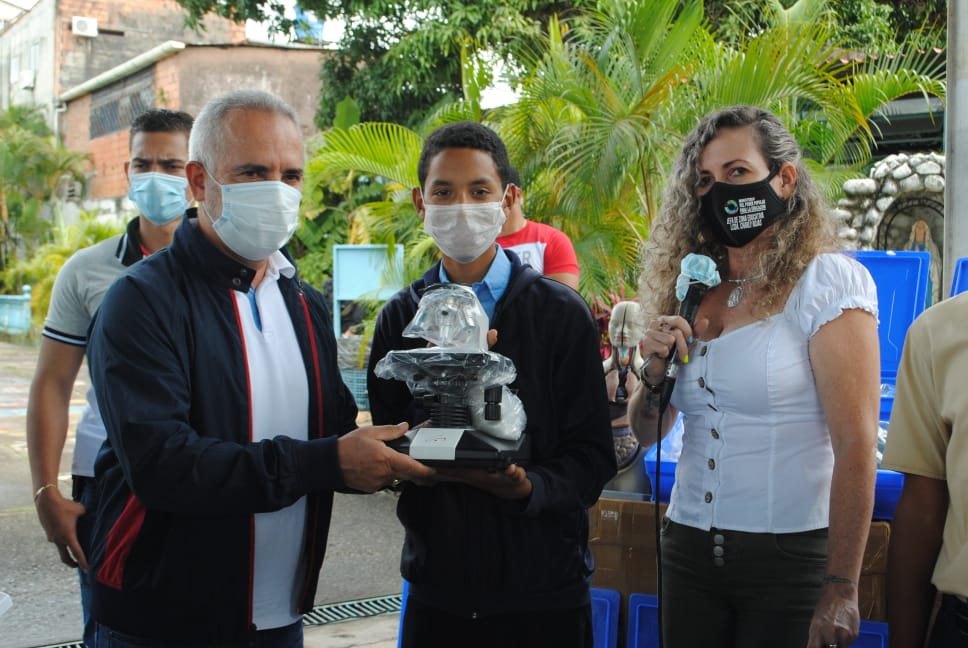 Entre tanto, Charly Rojas, jefa de la ZET, señaló que “en cumplimiento al Plan Cada Familia una Escuela, educación a distancia; entregamos también un laboratorio que cuenta con un kit de química, física, biología, electrónica, mecánica; son 21 piezas diferentes para nuestras niñas, niños y adolescentes de educación media técnica”.