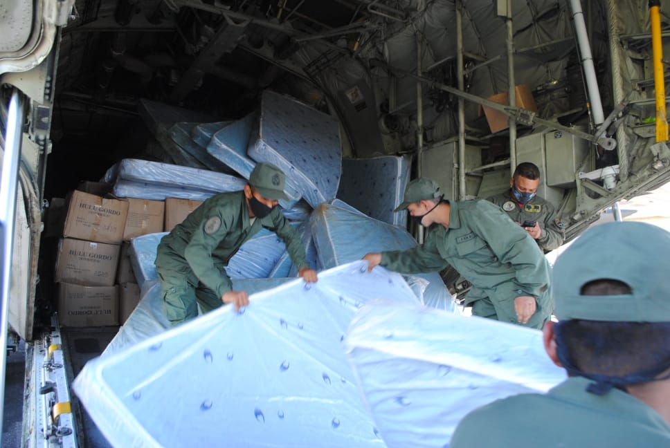 “A través del establecimiento de un puente aéreo, llegó este lunes a la Base Militar Buenaventura Vivas del Táchira; insumos, enseres y alimentos de primera necesidad tales como colchonetas, agua potable, cobijas, alimentos enlatados, granos, entre otros”, puntualizó en su cuenta en Twitter.