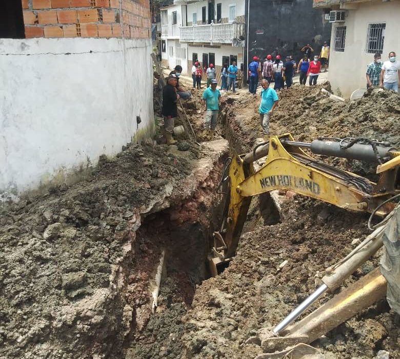 Inspeccionan los trabajos de excavación para la incorporación de colector principal de aguas servidas de 08 pulgadas y la sustitución de 150 ML de tubería de 08 pulgada de acero, en la comunidad La Chucuri parte Baja del municipio San Cristóbal, estado Táchira.