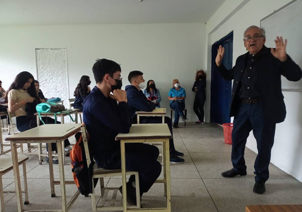 “Las personas tienden a confundir el concepto de ambiente, cuando indican que es todo lo que les rodea, y no es así, porque expresan una lejanía con la naturaleza, cuando en realidad estamos integrados al ambiente, y el ambiente somos todos”. Así inició el conversatorio el conocido poeta y escritor Luis José Oropeza, con la presencia de más de 30 estudiantes del quinto año de bachillerato de la institución, ubicado en el sector Los Naranjos.