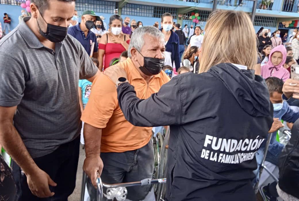 El gobernador Freddy Bernal y la presidenta de la Fundación del Niño, Karem Durán, entregaron a 30 familias provenientes de 9 municipios ayudas técnicas -articuladas previamente con la Misión José Gregorio Hernández-; coches, sillas de ruedas, bastones, entre otros, para mejorar su calidad de vida.