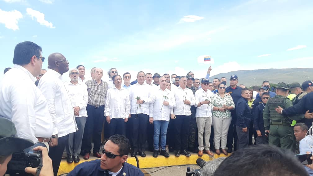 El presidente de Colombia, Gustavo Petro, acudió al paso fronterizo acompañado de su comitiva, que se encontró en el Puente Internacional con las autoridades venezolanas que acudieron al frente de la delegación venezolana.
