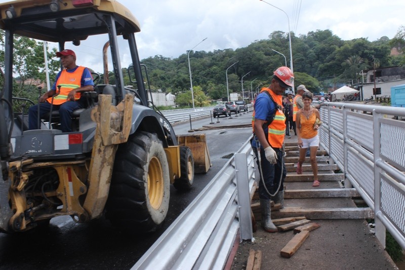 Comentó que, se están desarrollando trabajos de asfaltado e iluminación. Se tiene previsto demoler el antiguo puente de cemento debido a que hace represa con el agua, cuya acción está deteriorando las bases del puente en uso.