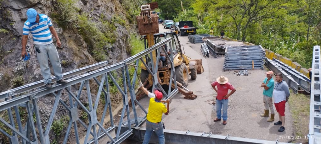 En imágenes compartidas se observa al gobernador en compañía del alcalde del municipio Jáuregui, Juan Carlos Escalante; así como personal del Ministerio del Poder Popular para Transporte y Corpotáchira, quienes junto a trabajadores de Puentes Cagua se encuentran al frente de las labores de colocación de la nueva infraestructura vial.