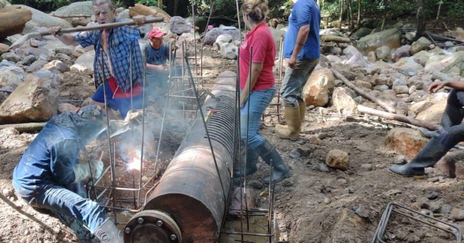 Los hombres de azul y las Brigadas del Poder Popular de las Aguas (Brippas) continúan los trabajos de vaciado de base de la toma submarina de 20 pulgadas, ubicada en el sector La Don Pedra. También, avanzan con los trabajos de construcción del Dique Toma del Acueducto La Mulata.