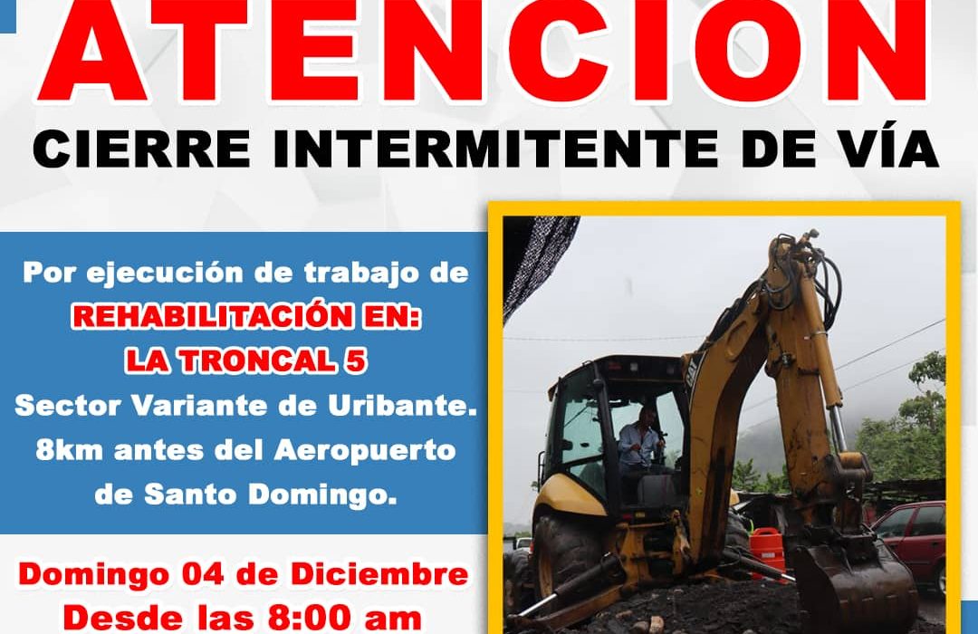 Ayer domingo 4 de diciembre, entre las 8 de la mañana y las 8 de la noche permaneció cerrada de manera intermitente la Troncal 005, en la vía el llano, específicamente en el sector Variante del Uribante.