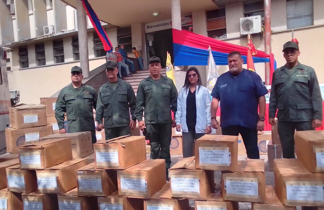 Alexander Krinitzky, director del Hospital Central de San Cristóbal, recibió los insumos que optimizan la atención brindada a los pacientes del Táchira y comunidades vecinas. “En nombre del gobernador Freddy Bernal, de la Autoridad Única de Salud, el Dr. Ángel Chacón y en nombre de esta institución, queremos agradecer a la Fuerza Armada Nacional Bolivariana este gesto de apoyo, que demuestra día a día que la unión cívico militar lograra los objetivos en este país de ser todos uno solo, juntos por cada latido”, acotó.