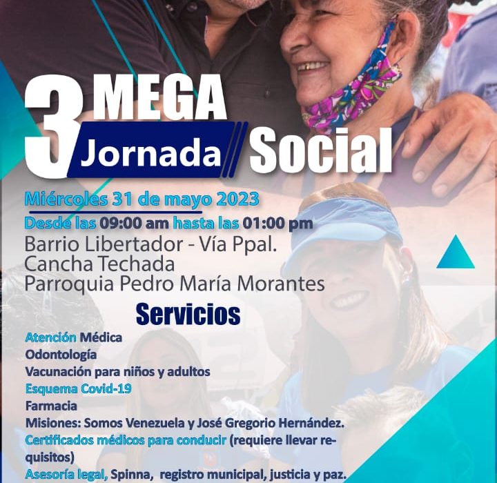 El alcalde Silfredo Zambrano y la presidenta del Instituto Autónomo de Desarrollo Integral San Cristóbal (Iamdesin), Janice González, invitan a la comunidad del Barrio Libertador a las Tercera Mega Jornada social, la cual se realizará hoy miércoles, en la cancha techada del mencionado sector desde las 9 de la mañana hasta la 1 de la tarde.