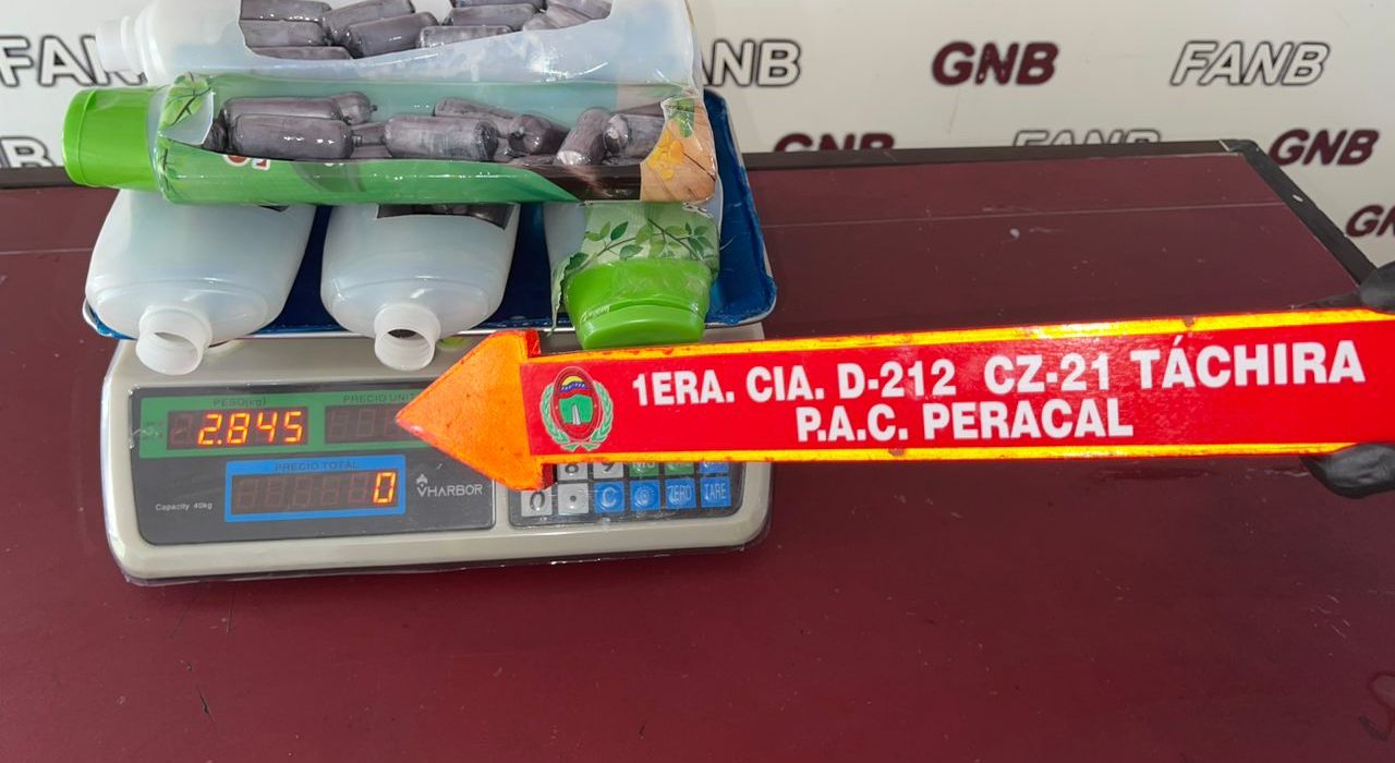 El procedimiento se desarrolló en el Punto de Atención al Ciudadano de Peracal, -jurisdicción de la ZODI 21 Táchira-; cuando en labores de escudriñamiento detectaron que la femenina llevaba frascos de champú contentivos de presunta cocaína.