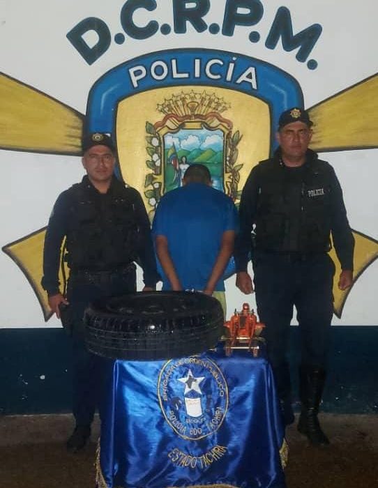 Funcionarios adscritos a la Dirección de Control de Reuniones Públicas y Manifestaciones (DCRPM) de Politáchira, capturaron a un sujeto que había hurtado de un vehículo un caucho de repuesto y un gato hidráulico, en el sector de la prolongación de la Quinta Avenida de la parroquia La Concordia.
