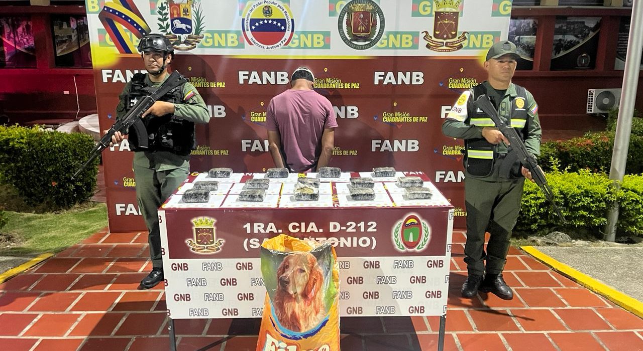 Un hombre que se trasladaba en un vehículo de transporte público, con destino a San Cristóbal, fue detenido por efectivos de la Fuerza Armada Nacional Bolivariana con droga oculta en un bulto de alimentos para perros.