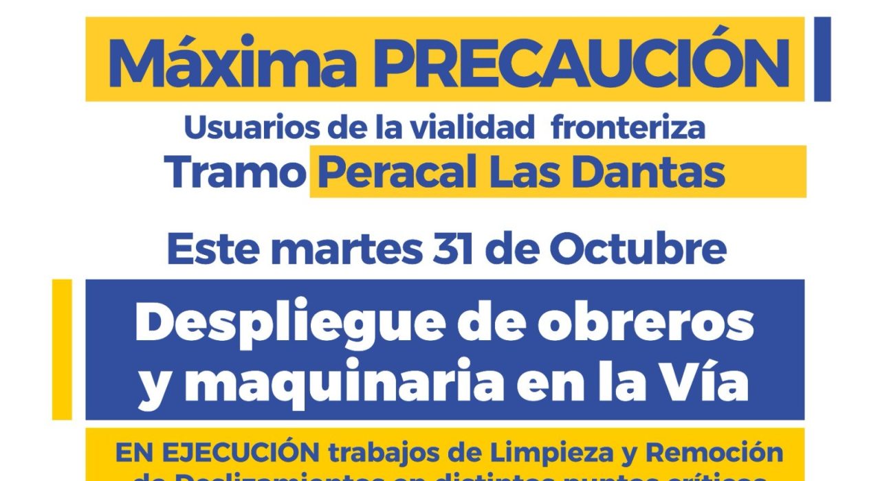 Estimó que las labores de limpieza de los distintos deslizamientos se mantendrán durante varios días consecutivos, razón por la cual, exhortó a los usuarios y a la colectividad en general a conducir con precaución debido al despliegue de obreros y maquinaria en la zona.