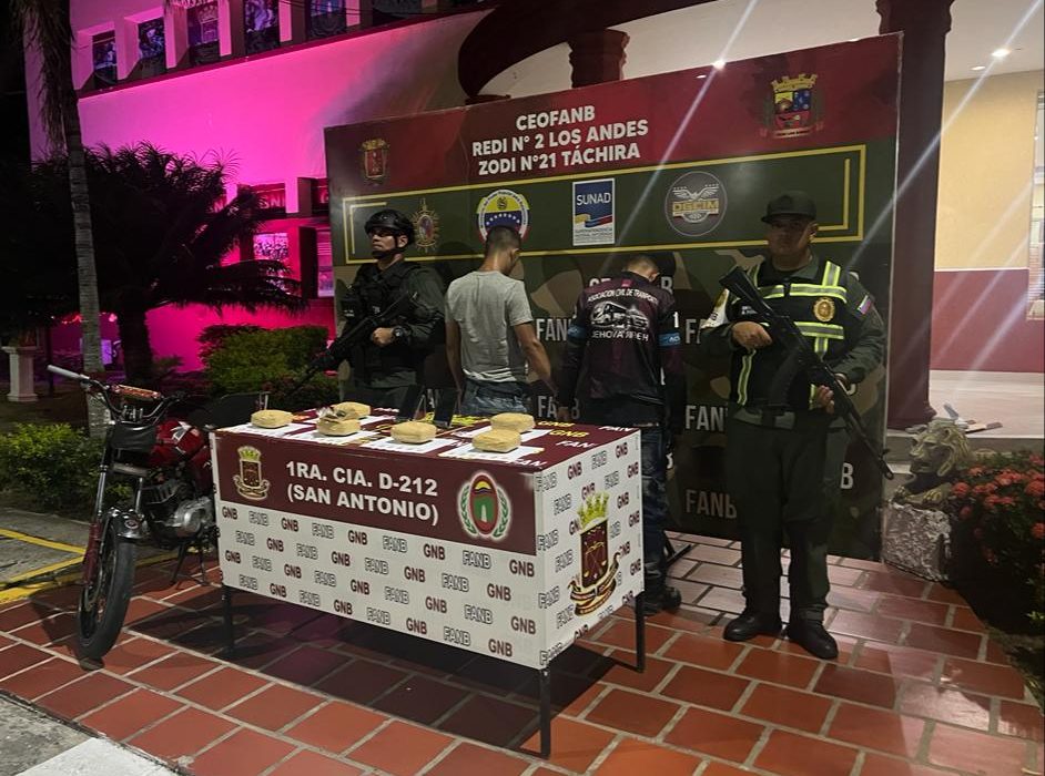 Los detenidos se movilizaban en una moto, con destino a San Antonio del Táchira; llevaban sendos morrales dónde ocultaban un alijo de cannabis.