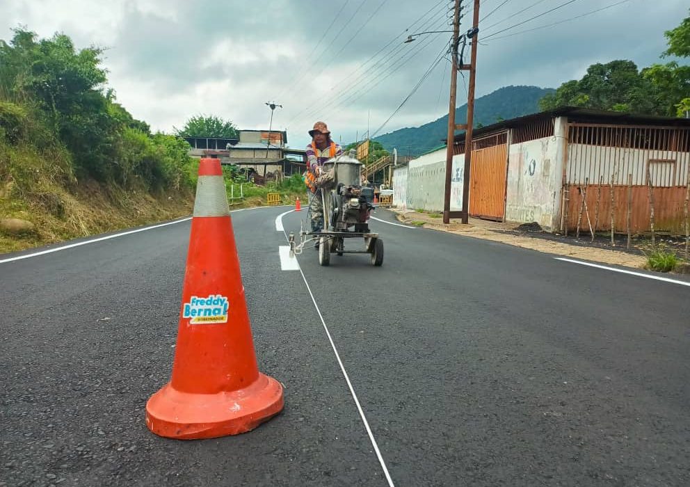 Ángel Márquez, presidente del IVT, informó que actualmente se adelantan trabajos de demarcación horizontal de línea continua y discontinua en laterales y eje central de la vía. Además, de la colocación de delineadores reflectivos (ojos de gato), abarcando una longitud de dos kilómetros.
