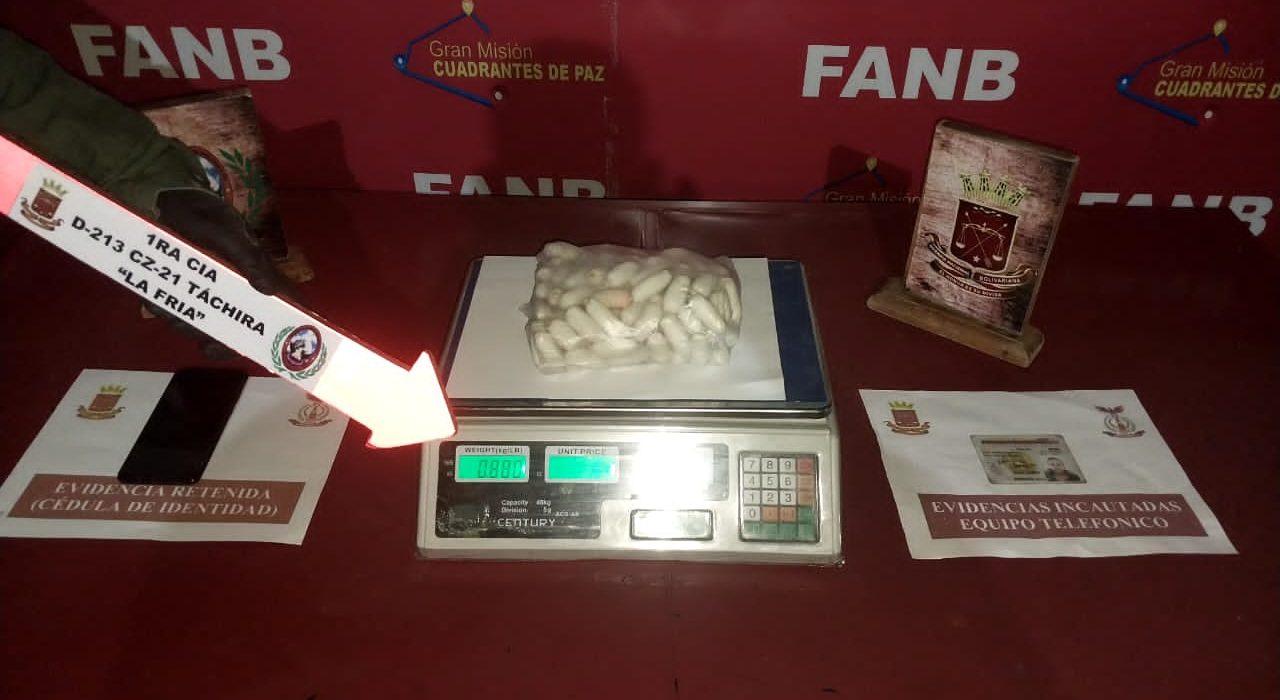 Un sujeto que se trasladaba con 71 dediles de presunta cocaína y dos de marihuana, fue detenido por efectivos de la Fuerza Armada Nacional Bolivariana, en el municipio Bolívar del estado Táchira; jurisdicción de la ZODI 21 Táchira.