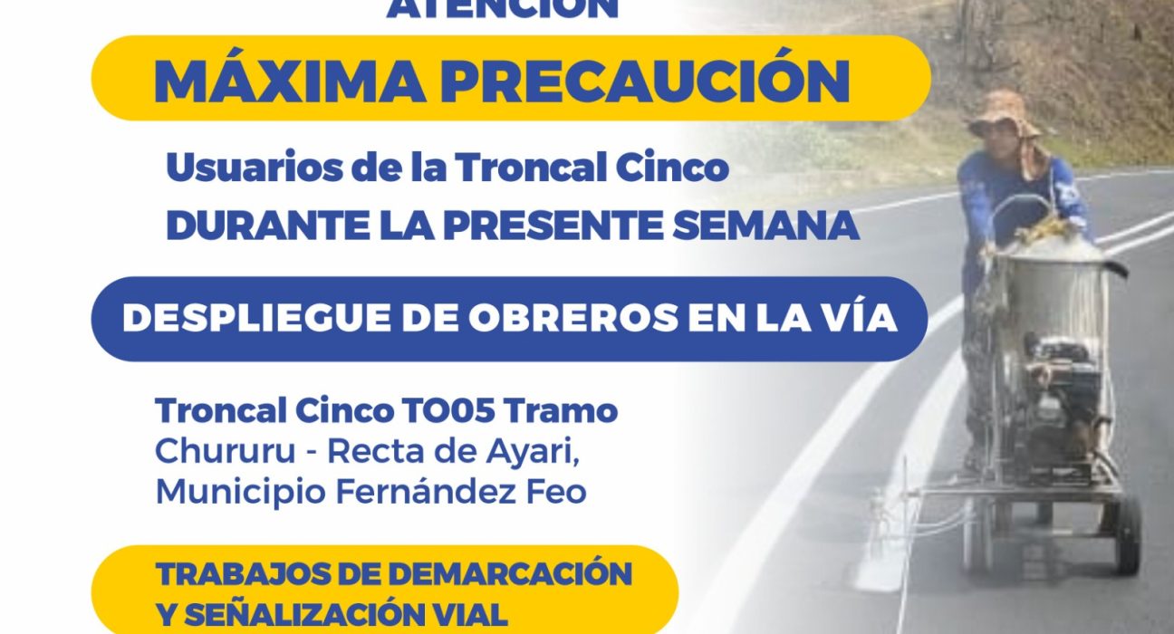 El presidente del Instituto Autónomo de Vialidad (IVT), Ángel Márquez, informó que a partir de (ayer) martes y durante la presente semana se mantendrá el despliegue de cuadrillas en la vialidad de la Troncal 005; a la altura del tramo entre Chururú y la Recta de Ayarí, municipio Fernández Feo.