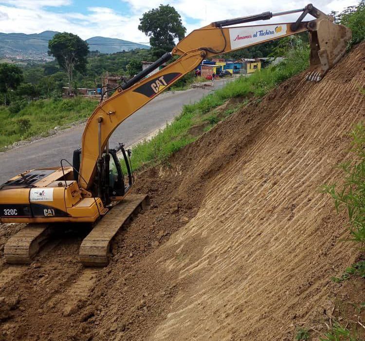 Trabajos de reperfilamiento de talud para la estabilización de terrazas a la altura del sector Santa Elena, en la Local 09 -vía Rubio San Cristóbal-. Actualmente adelanta la Gobernación del Táchira a través del Instituto de Vialidad IVT.