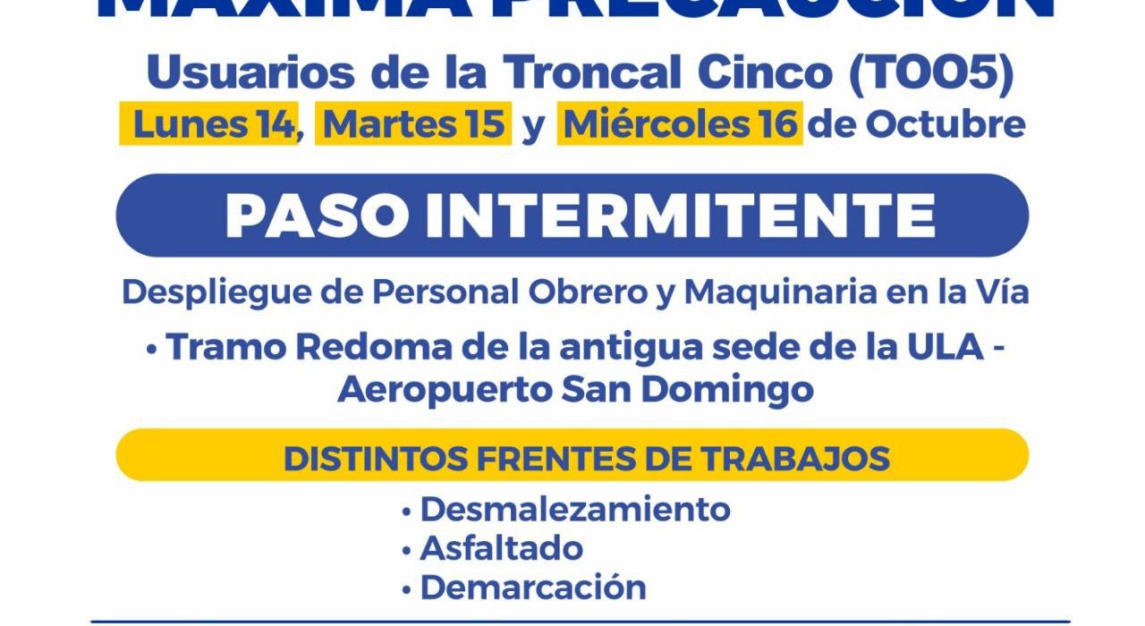 Despliegue operativo en la Troncal 05 tramo Redoma ULA- Aeropuerto de Santo Domingo