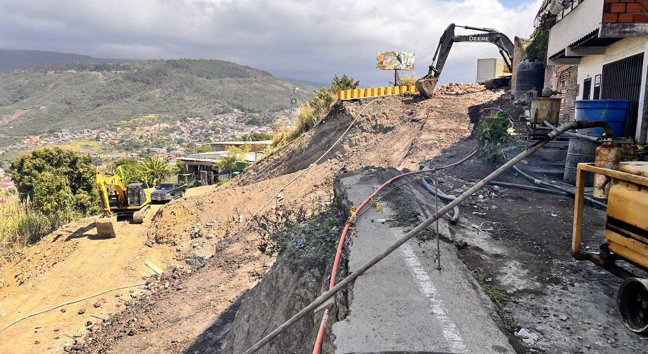 «¡Indetenible! Las labores de estabilización y restitución vial en el centro de Capacho Viejo continúan. Actualmente se construye un terraplén que filtra las aguas de la zona montañosa».