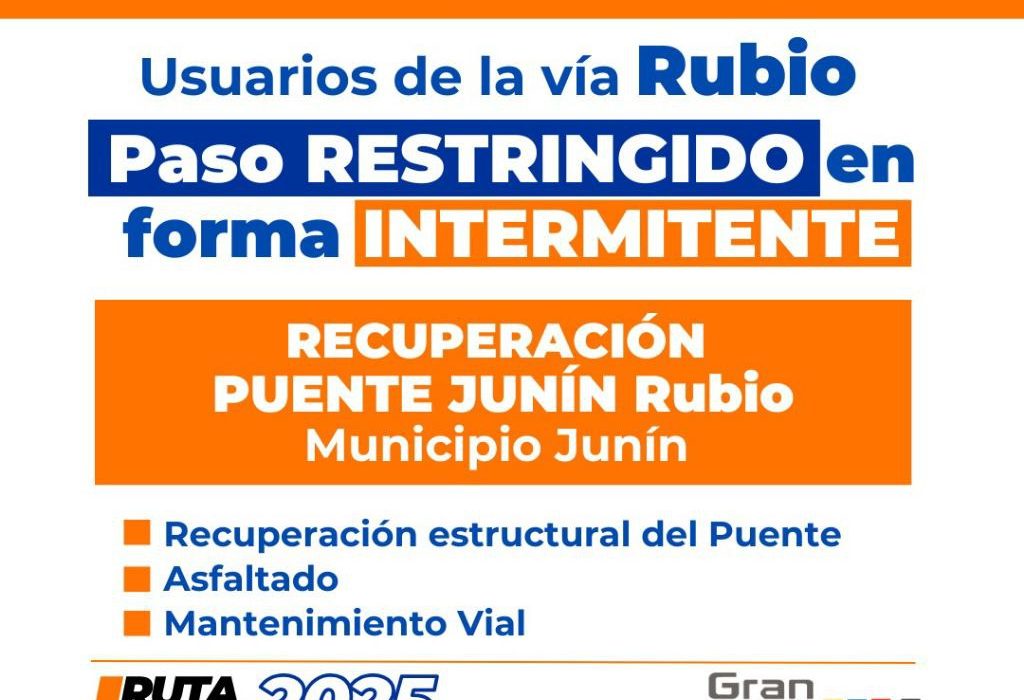 El Gobierno Regional en conjunto con el Ministerio del Poder Popular para el Transporte avanza en la rehabilitación progresiva de distintos puentes en la entidad tachirense. En el marco de la Ruta Vial 2025; se adelantan trabajos de recuperación del Puente Junín en la población de Rubio, municipio Junín.
