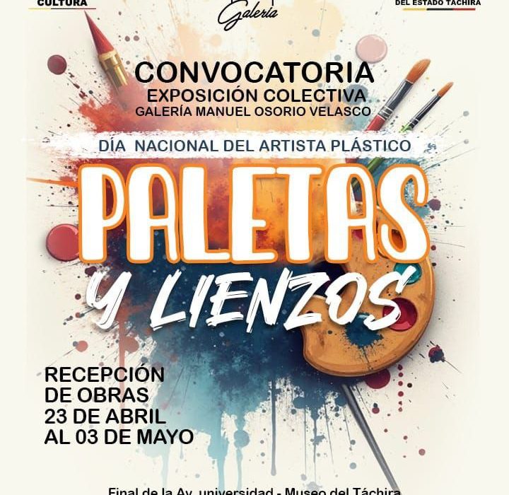 La Galería Manuel Osorio Velasco de la Dirección de Cultura del estado Táchira en conmemoración del Día Nacional del Artista Plástico, invita al público en general a la exposición colectiva presencial titulada: «Paletas y Lienzos».