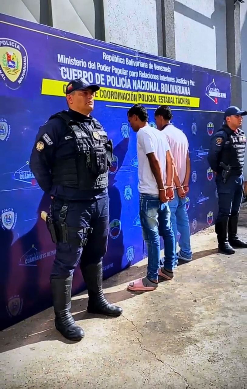El comisario general Jeffrey Rodríguez, director de la Policía Nacional Bolivariana (PNB) en Táchira, informó la detención de dos sujetos implicados en el delito de robo de vehículo, automotor agravado (moto), en el sector «La Quebradita», municipio Córdoba.