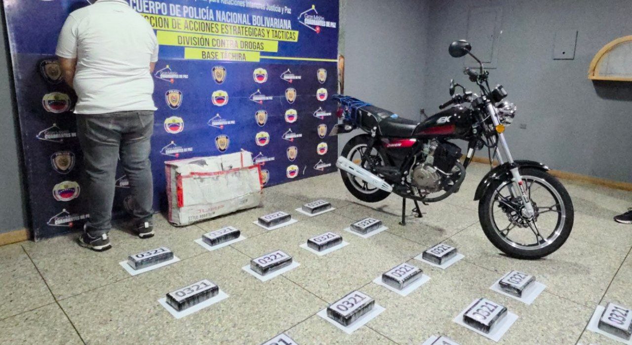El gobernador del estado Táchira, Freddy Bernal, informó que un total de 20 panelas de presunta cocaína fueron incautadas. Cada una tenía un peso calculado de un kilo. Estas eran movilizadas dentro de una caja compacta, en una motocicleta, para ser entregadas.