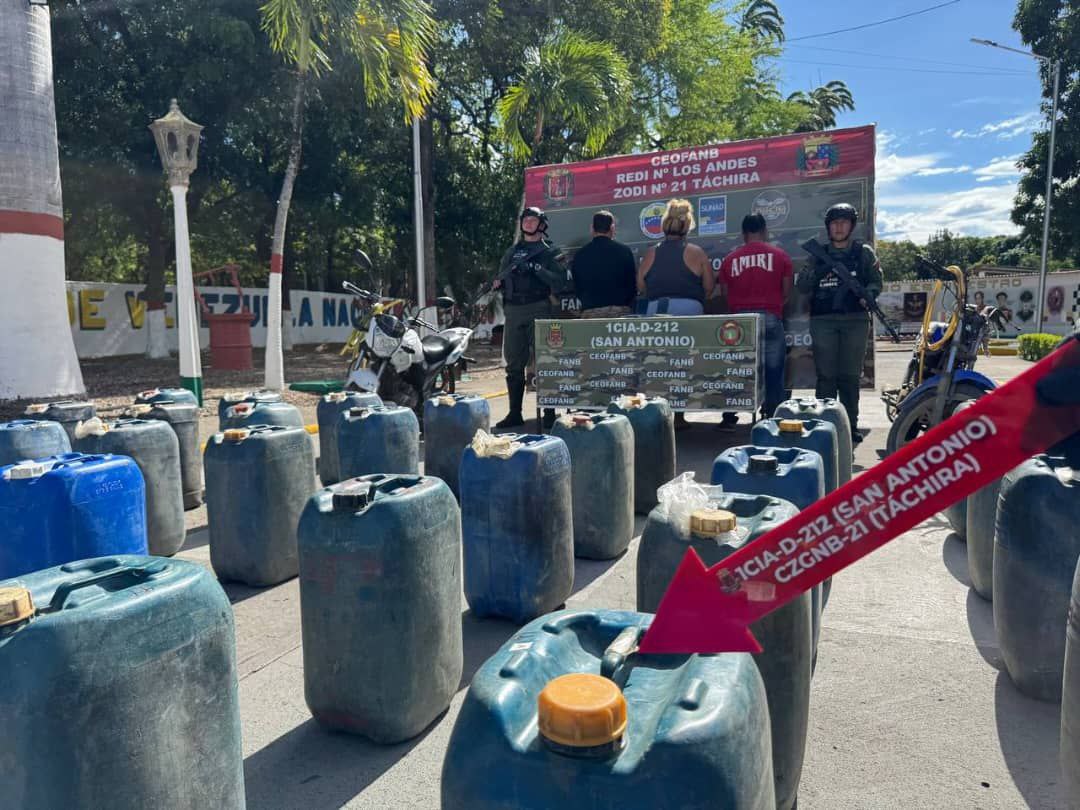 Un total de tres mil 560 litros de combustible fueron retenidos por efectivos de la Fuerza Armada Nacional Bolivariana en San Antonio del Táchira. También desactivaron un grupo estructurado de delincuencia organizada, en la jurisdicción de la ZODI 21 Táchira.