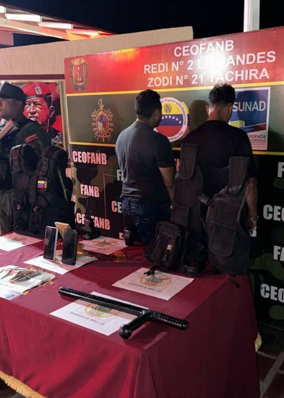 Los ciudadanos fueron detenido en flagrancia e identificados con el GEDO Los Pepones. Se les incautó dos (02) chalecos antibalas, dos (02) radio transmisores, un (01) cargador, dos (02) armas blancas y una (01) tonfa policial.