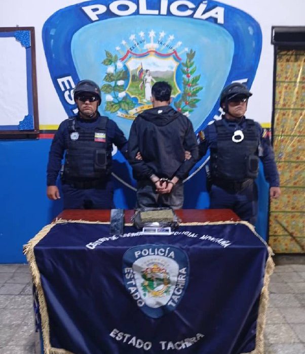 El detenido fue identificado como J. Perdía de 28 años de edad, oriundo de La Grita, quien junto a la evidencia una panela de Marihuana con un peso de 495 gramos, quedó a órdenes del Ministerio Público.
