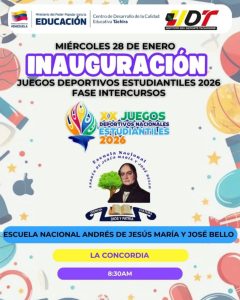 Uno de los anuncios realizados en la reunión fue la definición de la fecha y lugar para la inauguración de la fase intercursos por el Táchira, prevista para el 28 de enero, en este caso la Escuela Nacional Andrés de Jesús María y José Bello en el municipio San Cristóbal, específicamente en la localidad de La Concordia, a partir de las 8:30 de la mañana.