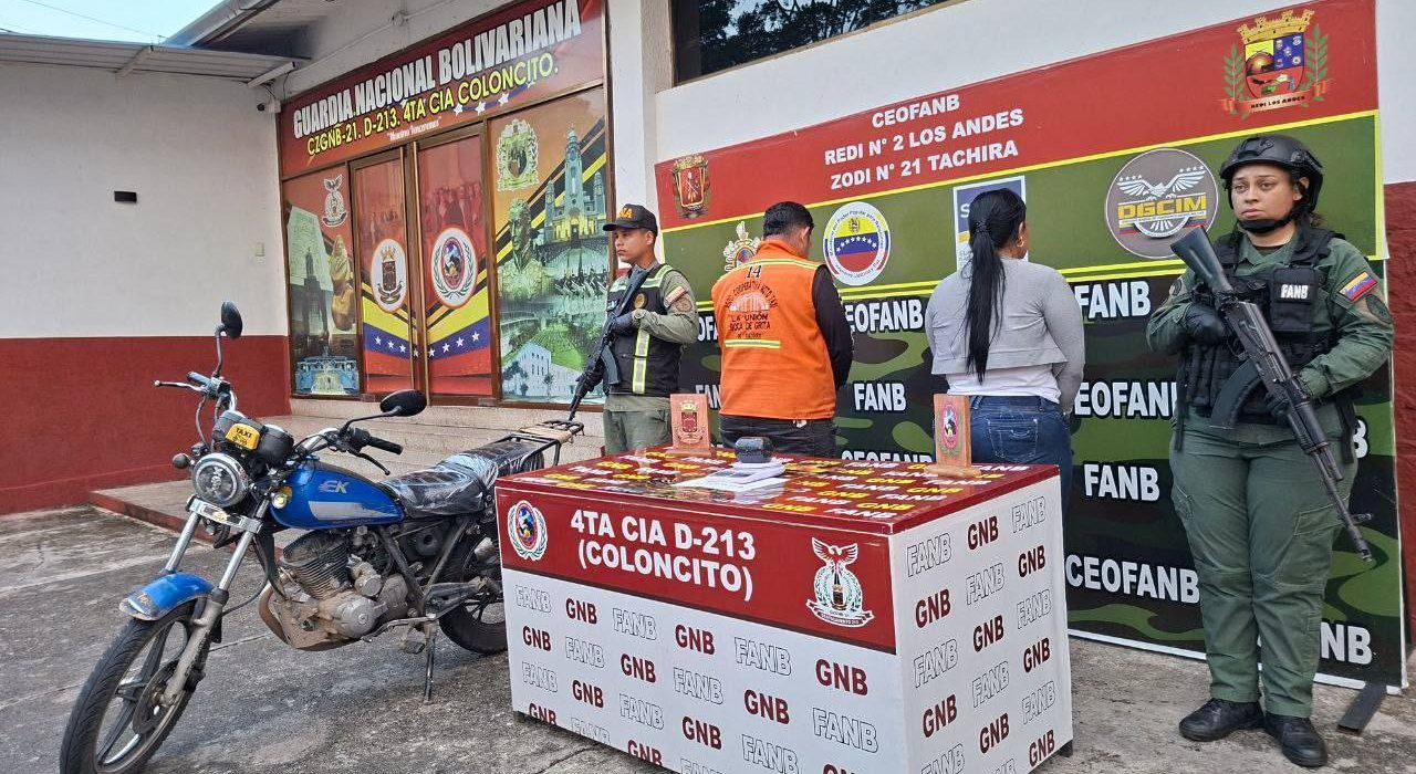 De acuerdo a las investigaciones de inteligencia, los aprehendidos: un hombre y una mujer, procedían de la República de Colombia y tenían como destino final la población de Coloncito, en el estado Táchira, donde se pretendía distribuir el cargamento. Se hicieron pasar por una pareja que estaba de paseo por la zona.
