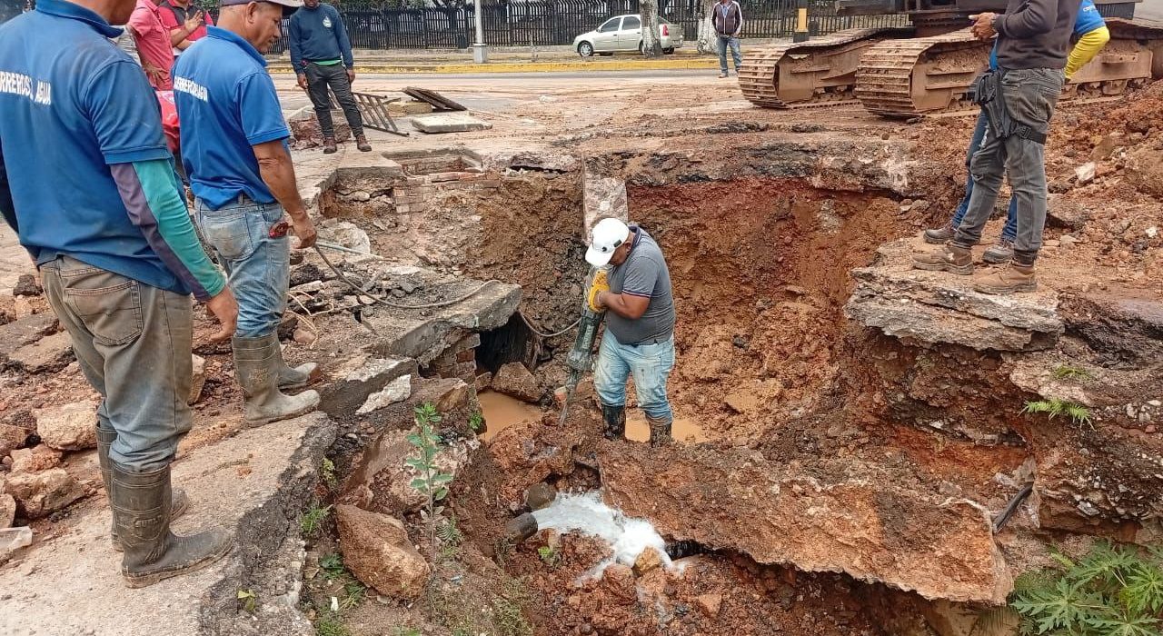 La Alcaldía de San Cristóbal inició trabajos de sustitución del colector de aguas servidas de 48 pulgadas en la intersección de la avenida 19 de Abril con la carrera 9 de La Concordia, a la altura del supermercado Cosmo.