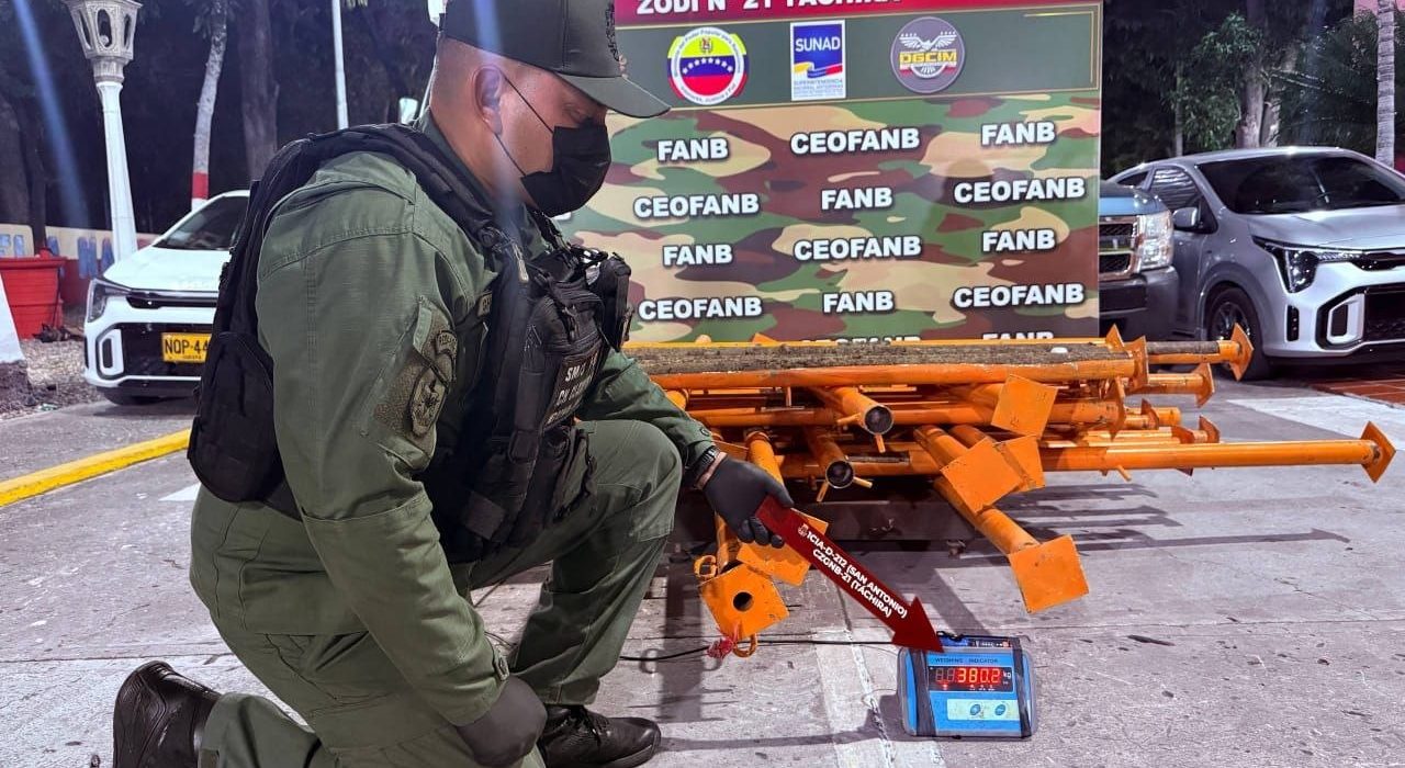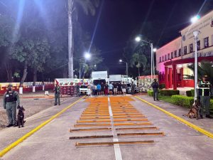 La detección del cargamento fue posible gracias a la acción del Semoviente Canino “Tokio”, cuyo entrenamiento especializado permitió identificar anomalías en un lote de carga pesada. Tras la revisión exhaustiva, los funcionarios localizaron cuarenta y tres tubos metálicos (muletas de construcción) que servían como doble fondo para ocultar la sustancia.
