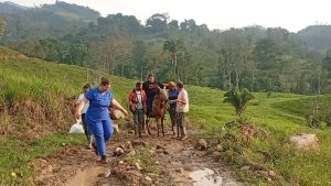 Durante tres horas a pie y a caballo, equipo del Área de Salud Integral Comunitaria (ASIC) Panamericano, se trasladó hasta la aldea Mata de Guineo en el municipio San Judas Tadeo, para brindar atención médica a las familias afectadas por los deslizamientos.