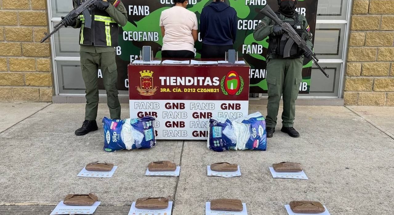 Los funcionarios hallaron doce envoltorios de presunta marihuana, con un peso bruto de seis kilos con quinientos gramos (6,500 kgs); oculta dentro de dos paquetes de pañales para adultos, con el fin de burlar los controles de seguridad. Dicho cargamento tenía como destino final la ciudad de Barcelona, estado Anzoátegui. }