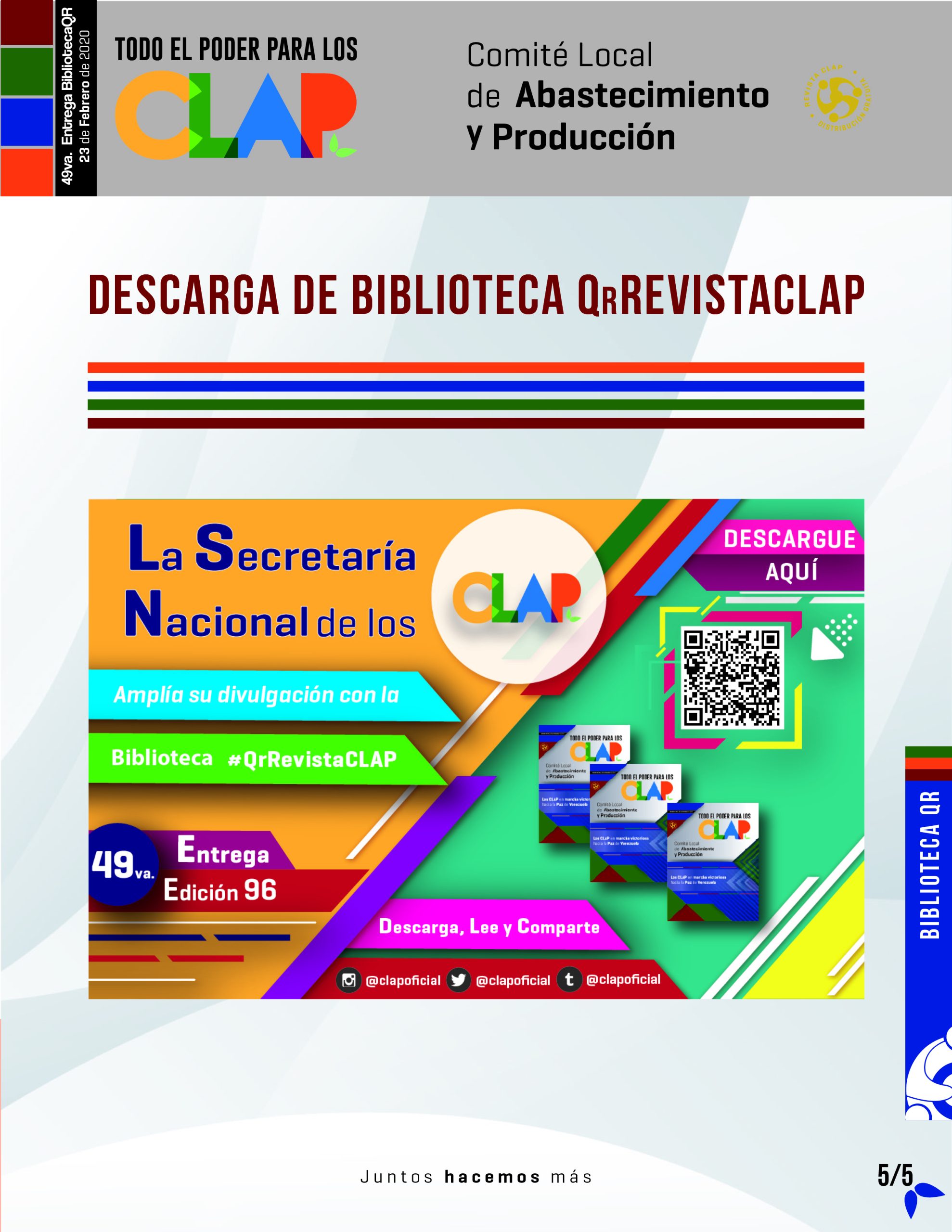 EN LOS MEDIOS La Secretaría Nacional de los CLAP pone a tu disposición... La Secretaría Nacional de los CLAP pone a tu disposición la edición 49 de la biblioteca virtual En el... 24 de febrero de 2020