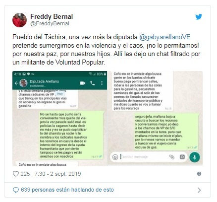 Bernal denuncia plan de desestabilización promovido por dirigente de ultraderecha... Bernal denuncia plan de desestabilización promovido por dirigente de ultraderecha en Táchira “Pueblo del Táchira, una vez más la... 2 de septiembre de 2019